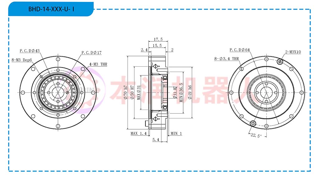 产品名称:BHD系列谐波减速器
